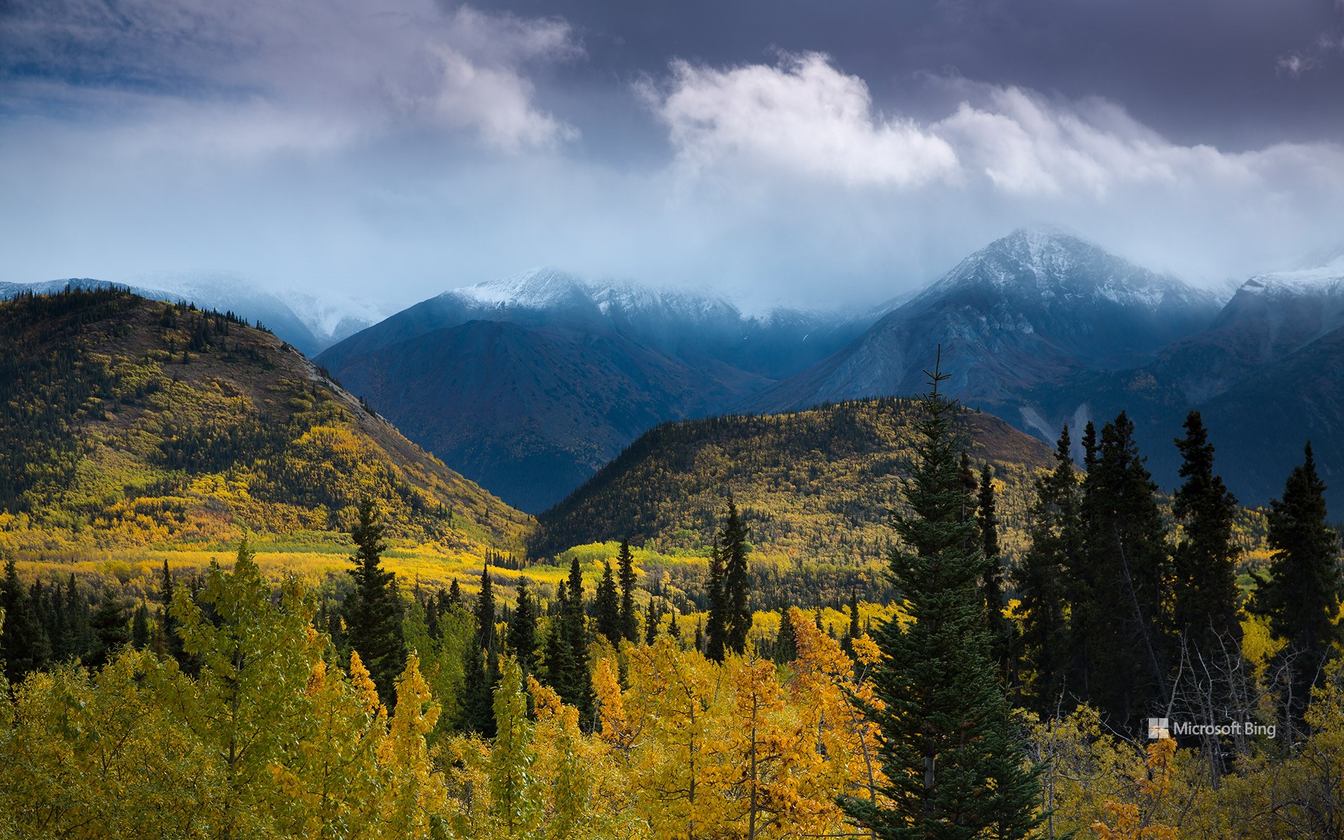 Autumnal woodland and Young Peak, British Columbia, Canada (© David Noton/Minden)
