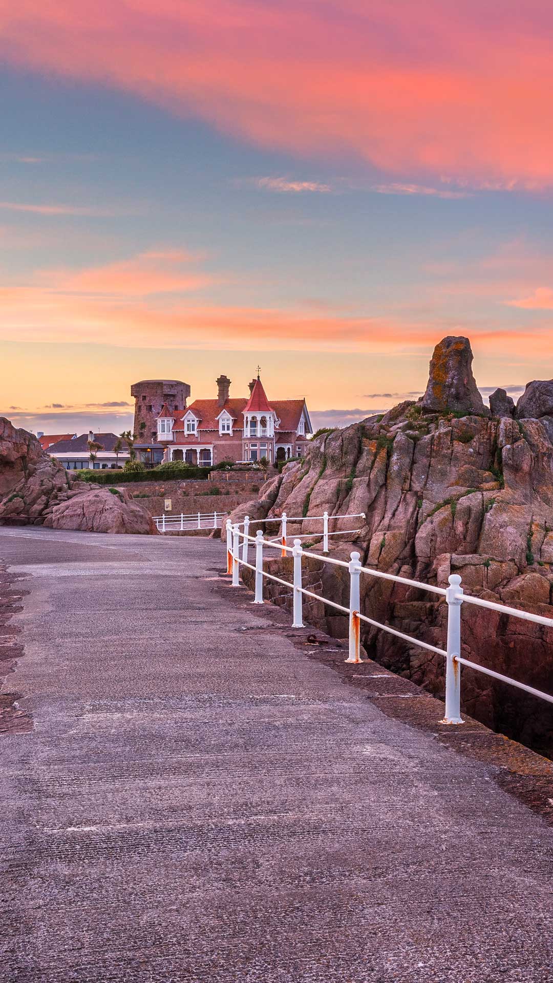Just off the coast of Normandy, France, lies Jersey, a British island with a Norse name. Found on the southeastern shore of the island is La Rocque Harbour, home to a white, sandy beach and an elevated walkway that stretches out into the water. The shoreline's granite and plutonic rocks, which originated more than 420 million years ago, showcase a variety of colours and textures. Visible from the harbour are the round, stubby Icho Tower and the taller Seymour Tower, built in the 18th and 19th centuries, respectively, as coastal defence structures. Both structures are over 548 metres away from the shore and can be reached on foot with a sturdy pair of shoes, but only on the days of the year where the tide is lowest.