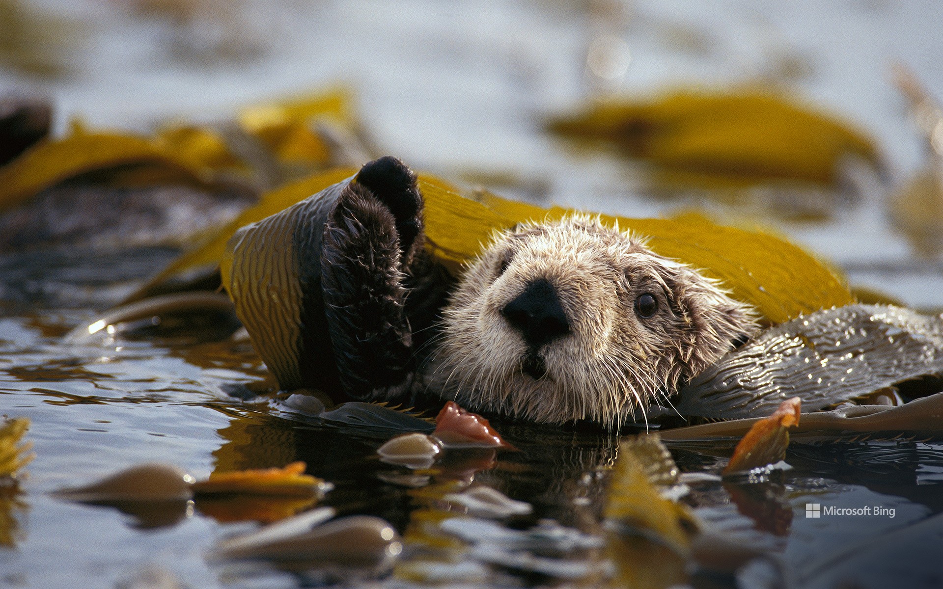 Sea otter floating in a kelp bed in Alaska Maritime National Wildlife Refuge (© Gerry Ellis/Minden Pictures)