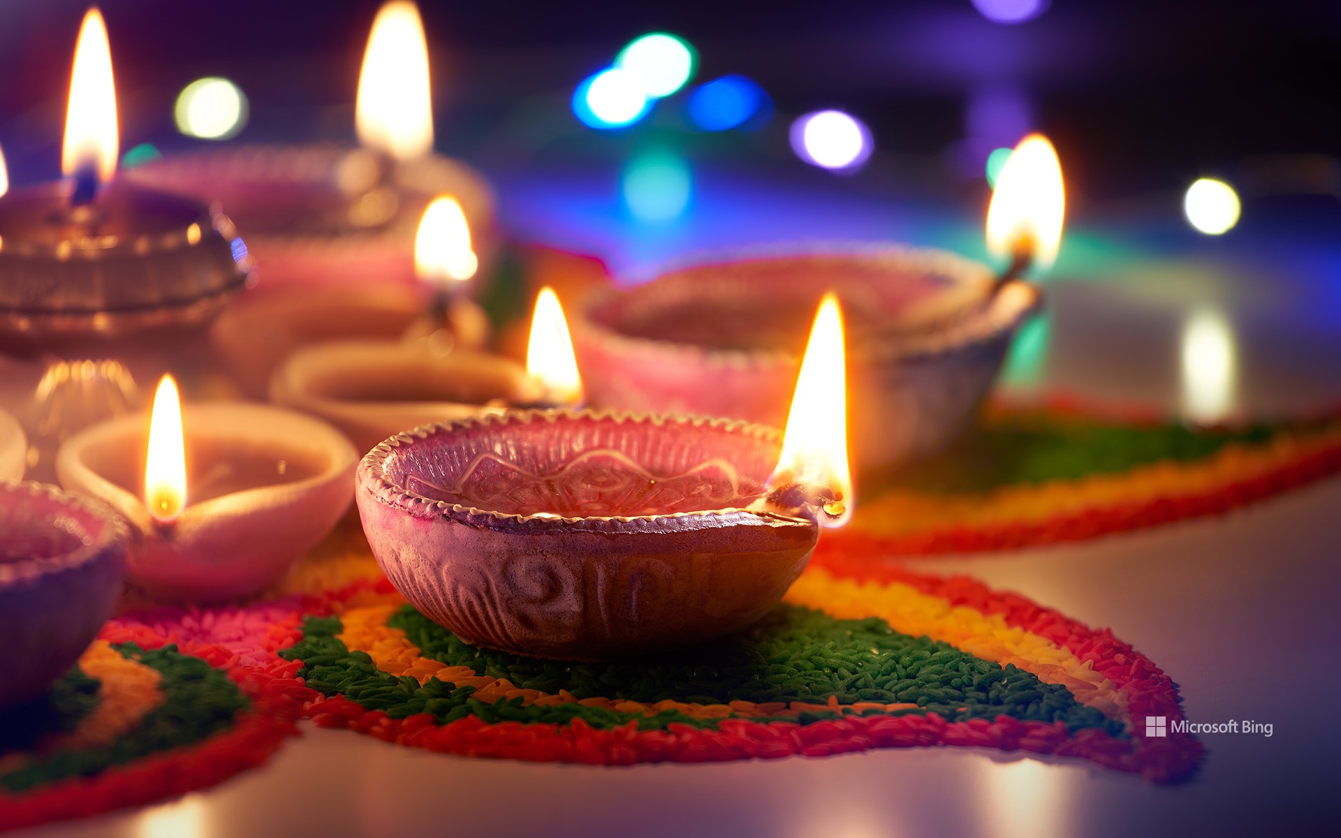 Oil lamps lit during Diwali (© phive2015/Getty Images)