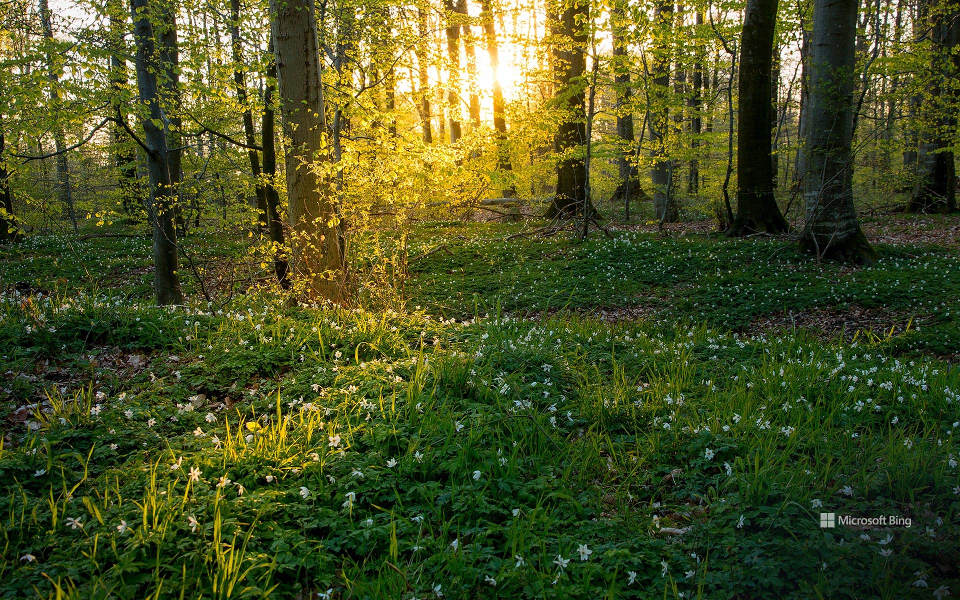 Today's homepage takes us to Jutland, Denmark, where the arrival of spring showcases the green hues of the European beech, a national symbol of this northern land. The young leaves of these budding trees are significant to the Danish people, as they are harvested from April to May and used in cooking—particularly in salads. In the past, Europeans would often use the smooth bark of beech trees for writings texts and the word 'book' is thought to be derived from the word for 'beech.' As the sun shines through the forest canopy, wild anemones brighten up the woodland with their white petals. These blooms, representing delicate beauty and sincerity, have even starred in masterpieces by artists such as Monet and Vincent van Gogh.