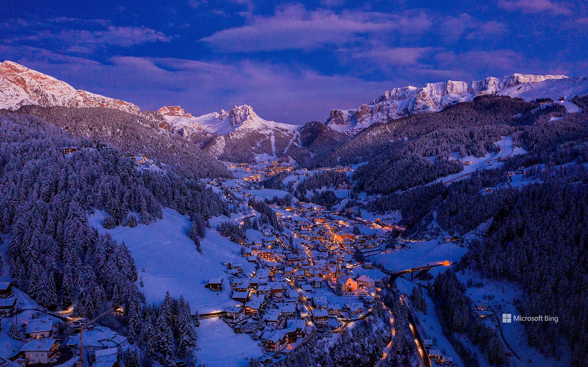 Pueblo de Val Gardena en Navidad, Dolomitas, Italia (© Ingus Kruklitis/Getty Images)