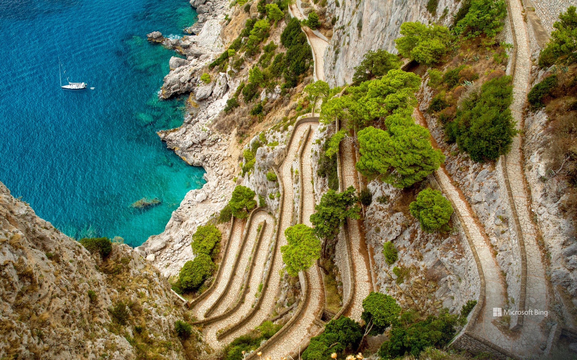 La Via Krupp, sentier historique de l'île de Capri en Italie, est réputée pour son spectaculaire tracé en lacets. Construit entre 1900 et 1902 par l'industriel allemand Friedrich Alfred Krupp, il relie la ville de Capri à la plage de Marina Piccola, ce qui permettait à l'époque à Krupp d'accéder à ses propriétés privées. Le tracé complexe du sentier, avec ses virages serrés et ses pentes raides, était une merveille d'ingénierie à l'époque.