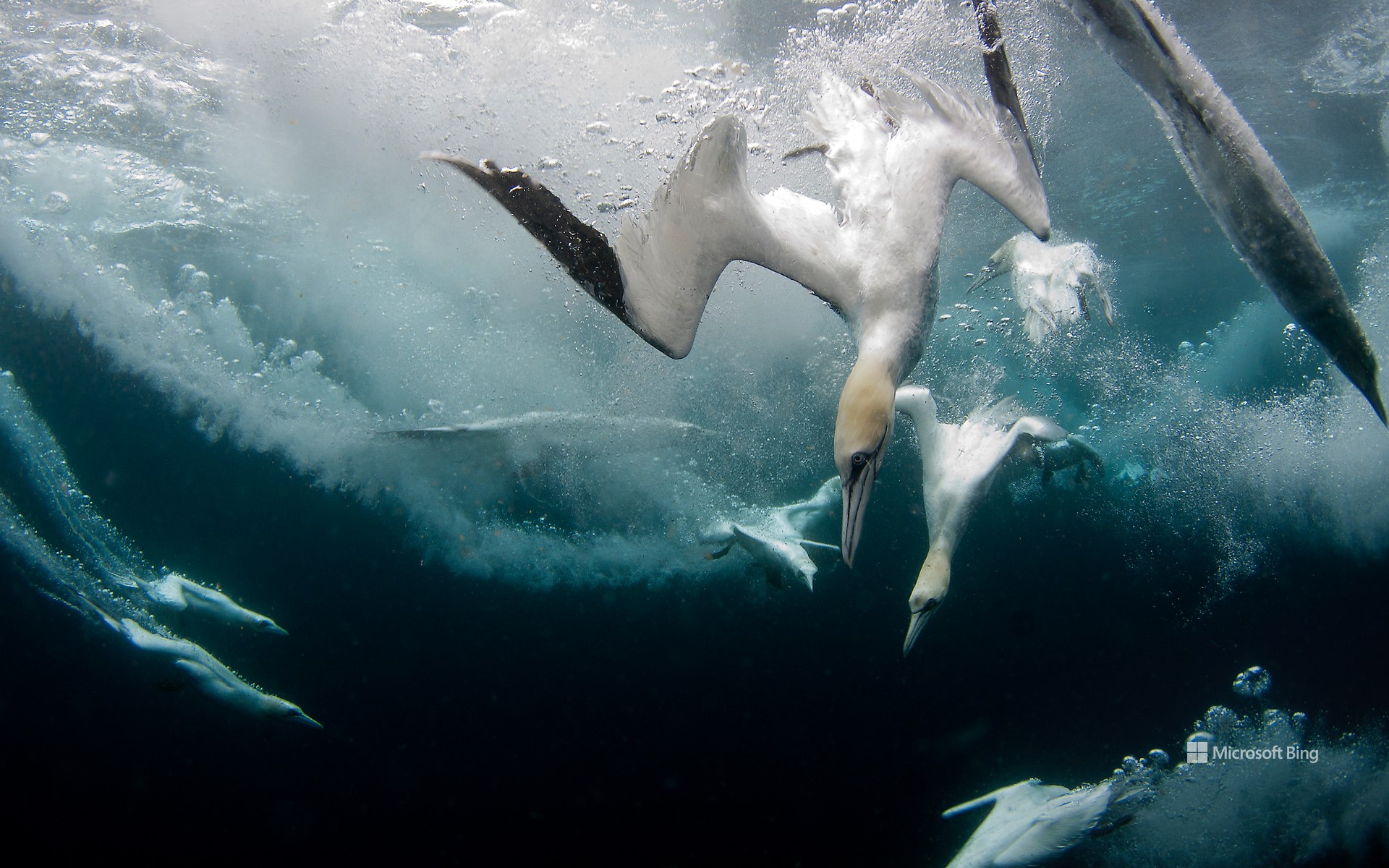 Sur les rivages battus par les vents des îles Shetland, au nord de l’Écosse, le fou de Bassan incarne la maîtrise de l’océan. D’un vol sûr, il repère sa proie à plus de 30 mètres de hauteur, replie ses ailes et fend l’air à plus de 100 km/h, avant de transpercer la surface de l’eau avec une précision chirurgicale. Son corps effilé, son crâne renforcé et ses coussins d’air naturels amortissent le choc. Une fois sous l’eau, il poursuit sa cible à l’aide de ses ailes et de ses pattes palmées, jusqu’à 20 mètres de profondeur.