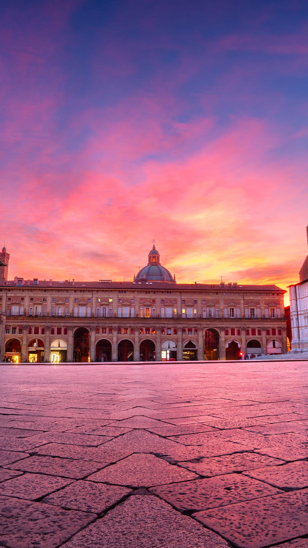 Siamo a Piazza Maggiore, forse la piazza più iconica di Bologna, avvolti dalla luce dorata dell’alba, quando la città è ancora silenziosa, addormentata, pronta a risvegliarsi. I primi raggi di sole colorano di rosa i mattoni antichi del Palazzo d’Accursio, mentre l’ombra maestosa di San Petronio si distende sulle lastre di pietra. L’aria è fresca, sospesa, e i pochi passi che echeggiano sotto il Voltone del Podestà sembrano riportarci indietro nel tempo. Svegliarsi presto non è mai facile, specie per chi non è abituato, ma momenti come questo ne valgono ogni sacrificio. È un silenzio che sfiora l'irreale, spezzato solo dalle prime luci dei caffè che iniziano a prendere vita.
