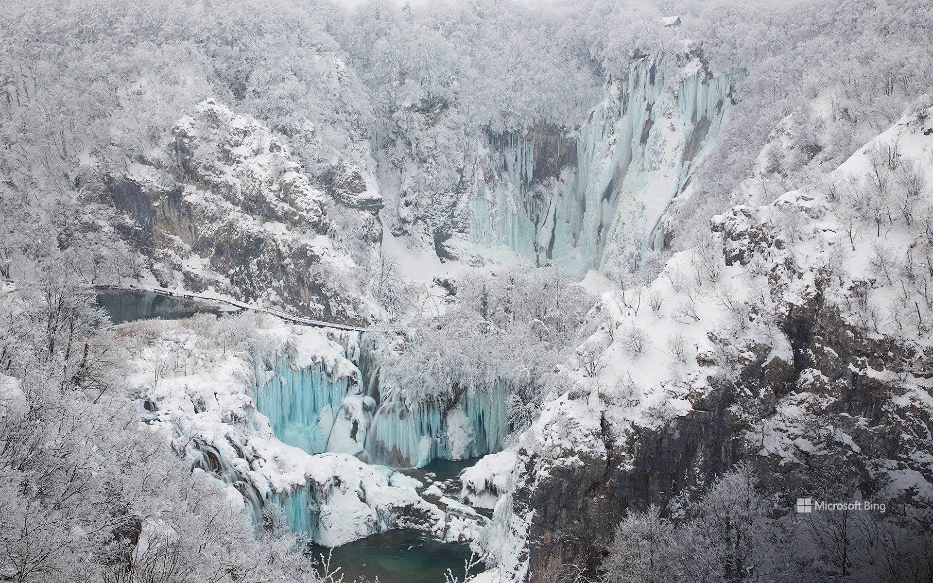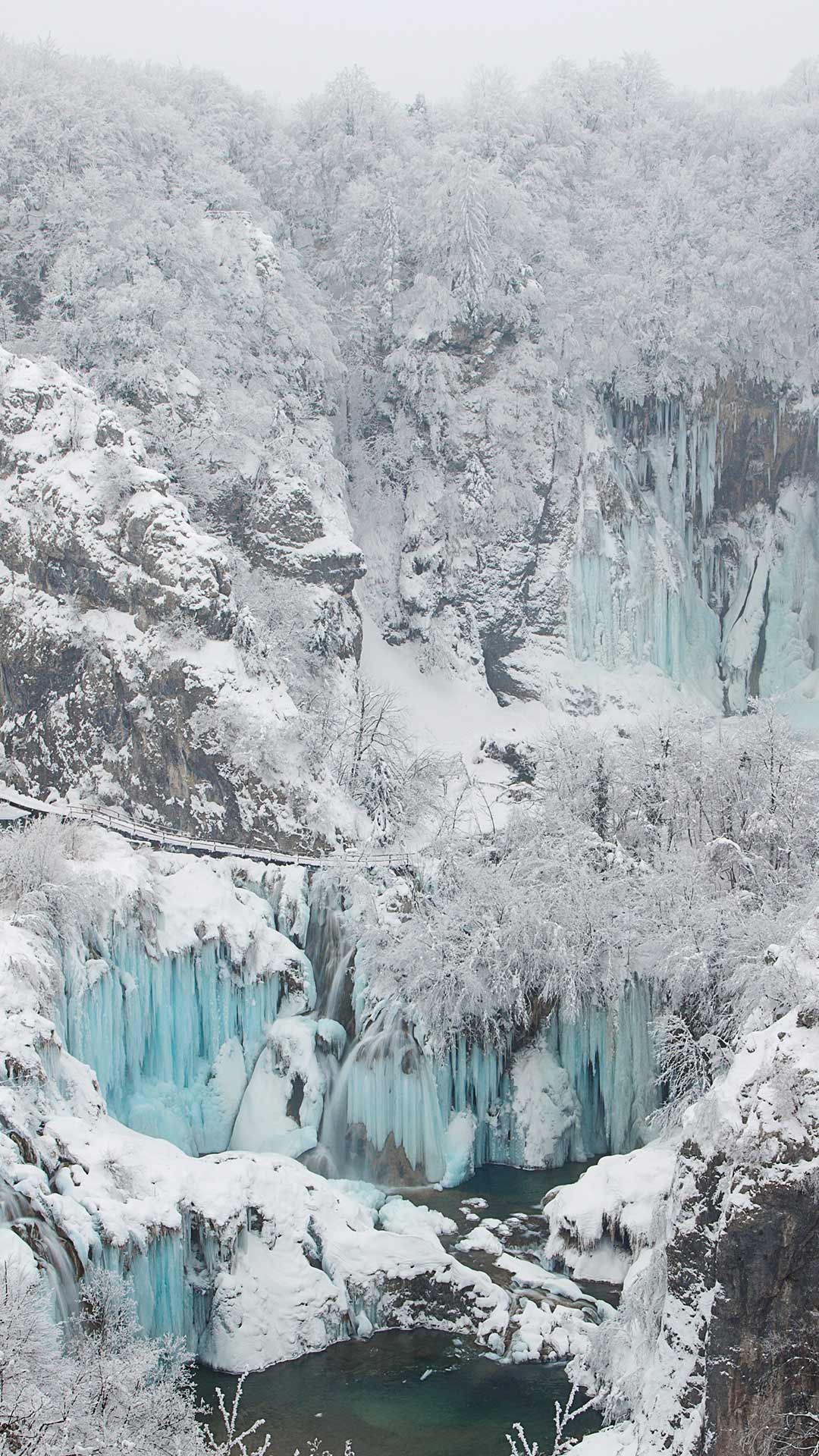 この湖群は、1979 年にユネスコの世界自然遺産に登録され、国内最大かつ最古の公園のひとつとして人気の観光地になりました。湖を縫う遊歩道に毎年約 100 万人の観光客が訪れ、壮大な景色を楽しみます。冬には、湖やかつて を立てていた滝が凍り、白銀の世界を創り出します。