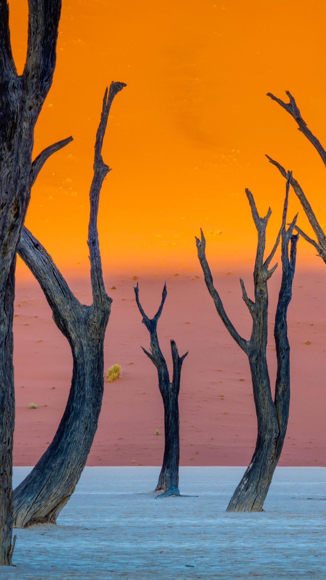 Pode parecer, mas o que vemos aqui não é uma miragem. O vale de Deadvlei, na Namíbia, parece feito de contrastes: troncos retorcidos e escurecidos brotam de um chão claro como giz, cercado por dunas vermelhas e um céu em brasa. Essas árvores são vestígios de um pântano que um dia existiu ali, alimentado pelo rio Tsauchab. Mas as dunas mudaram de lugar, barraram a água e selaram o destino da vegetação. As árvores secaram sob o sol impiedoso — e ficaram. Sem umidade, sem fungos, sem decomposição: há quase mil anos, os troncos permanecem de pé, como sombras fossilizadas que o tempo se esqueceu de levar.