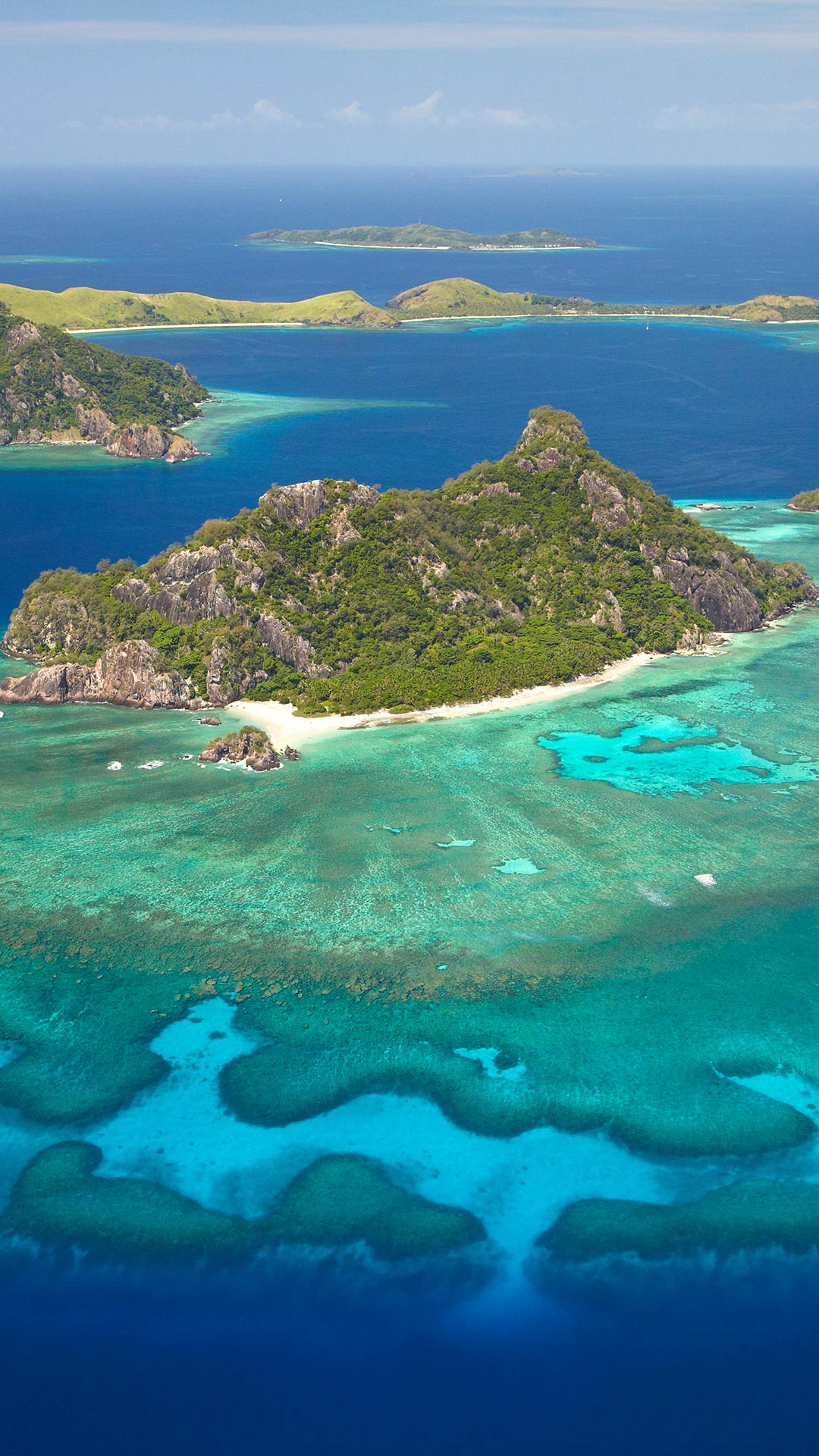 Recife de coral ao redor de Monuriki, Ilhas Mamanuca, Fiji (© David Wall/SuperStock)