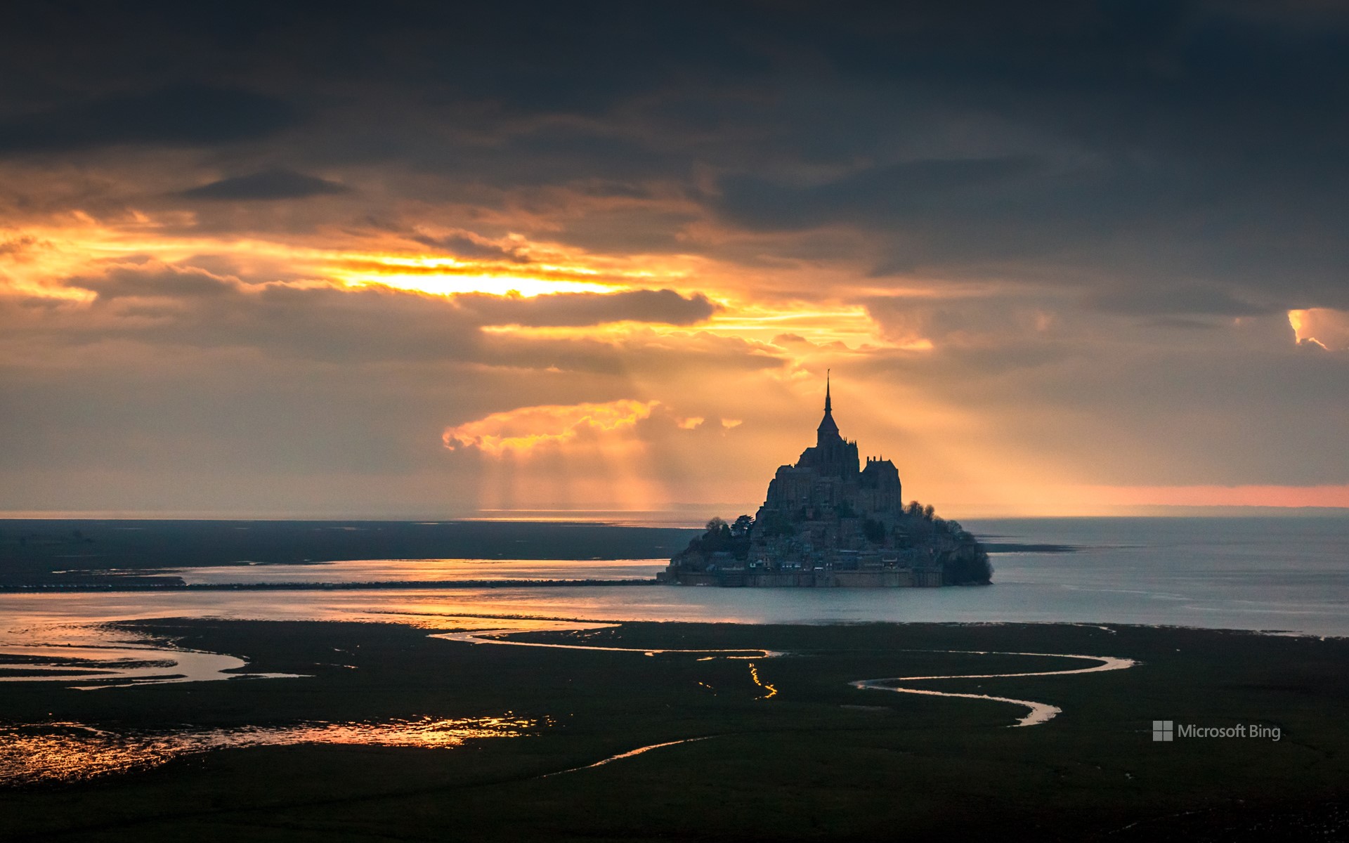 处于美轮美奂的光影中的圣米歇尔山 (© Mathieu Rivrin/Getty Images)