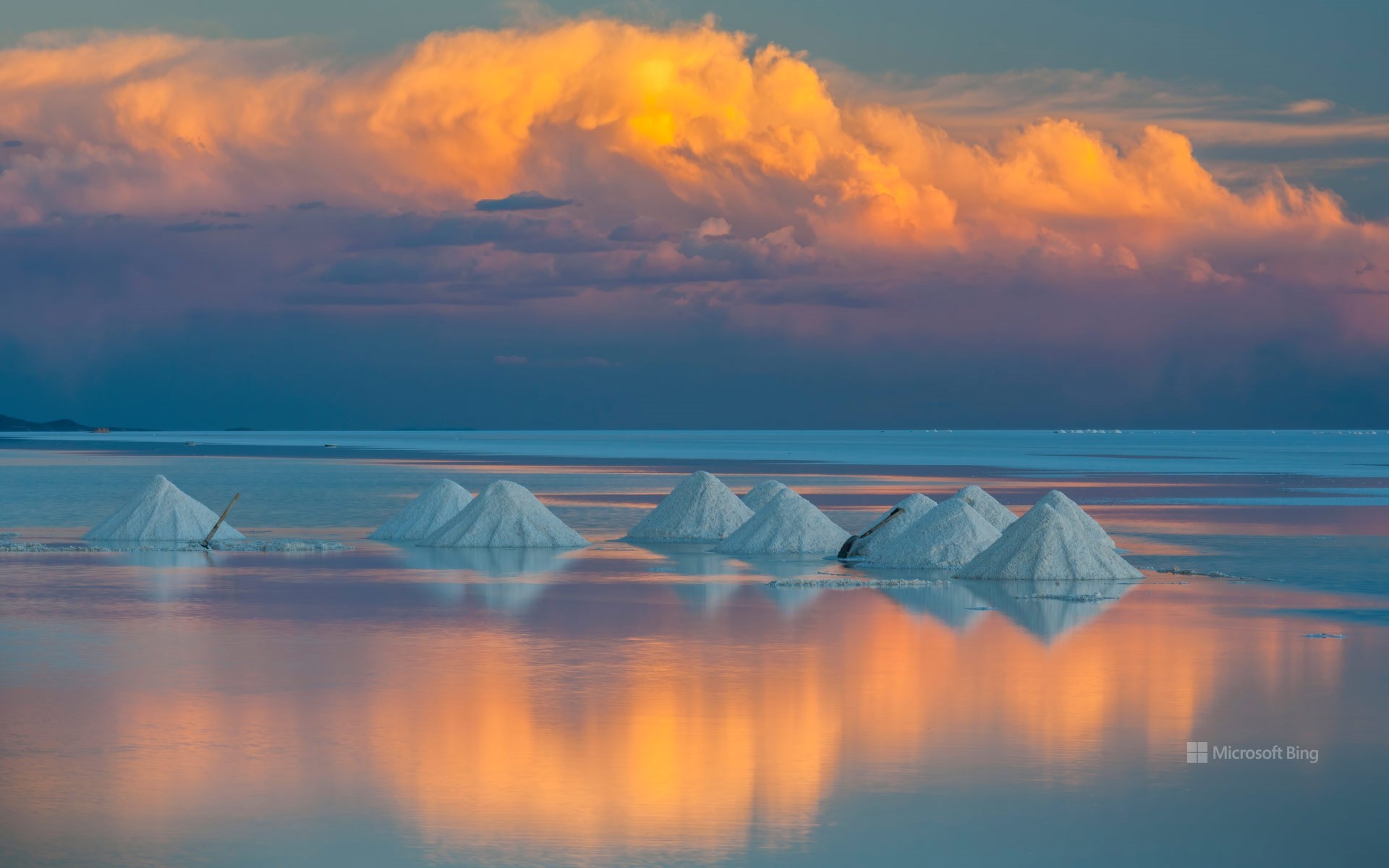 乌尤尼盐沼上的锥形盐堆,玻利维亚 (© John Shaw/Minden Pictures)
