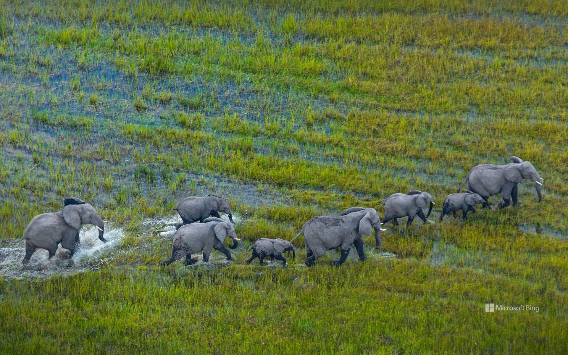 奥卡万戈三角洲上的非洲草原象群,博茨瓦纳 (© Juan-Carlos Munoz/Minden Pictures)