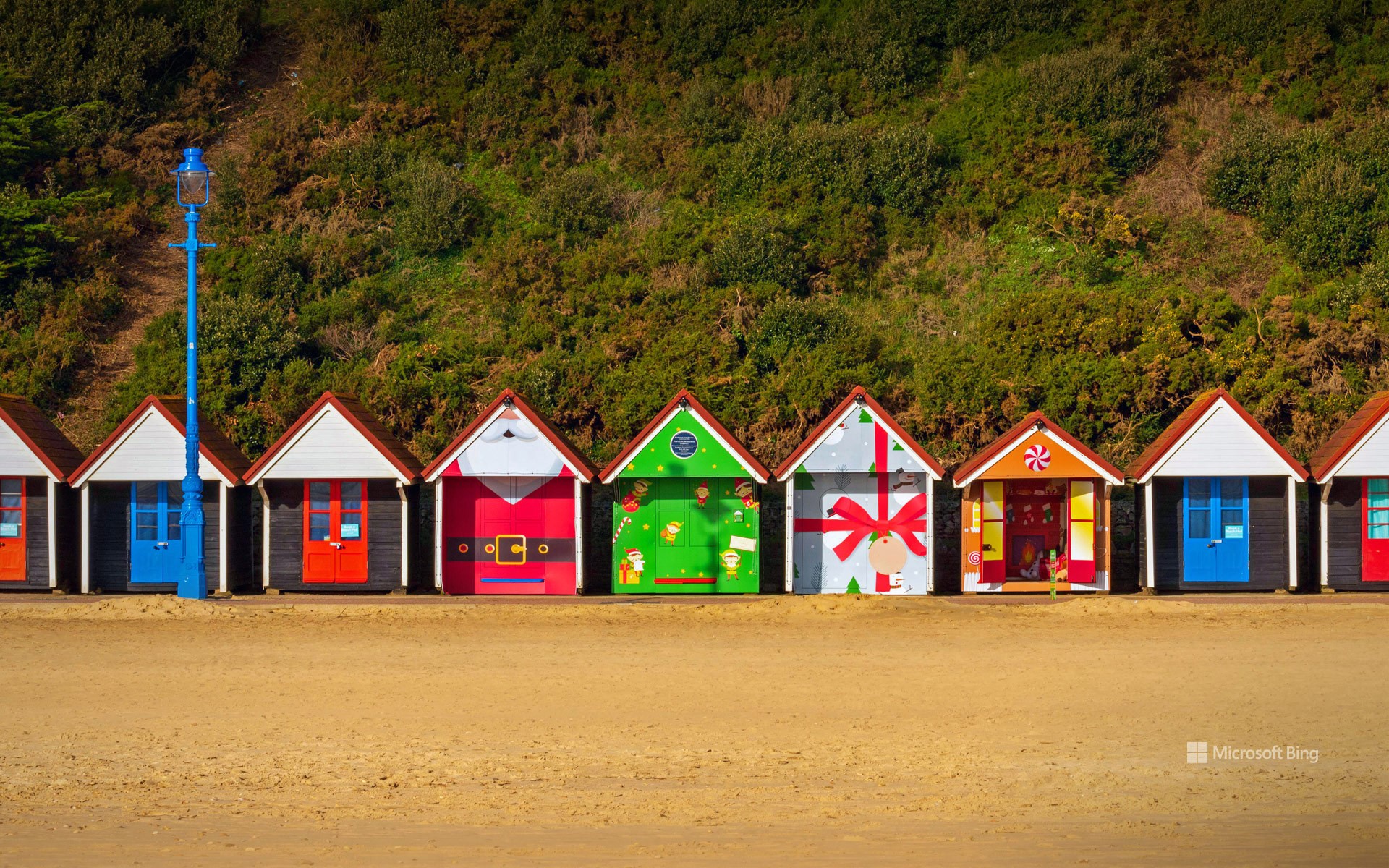 圣诞主题的海滩小屋,英国伯恩茅斯 (© Allouphoto/Alamy)
