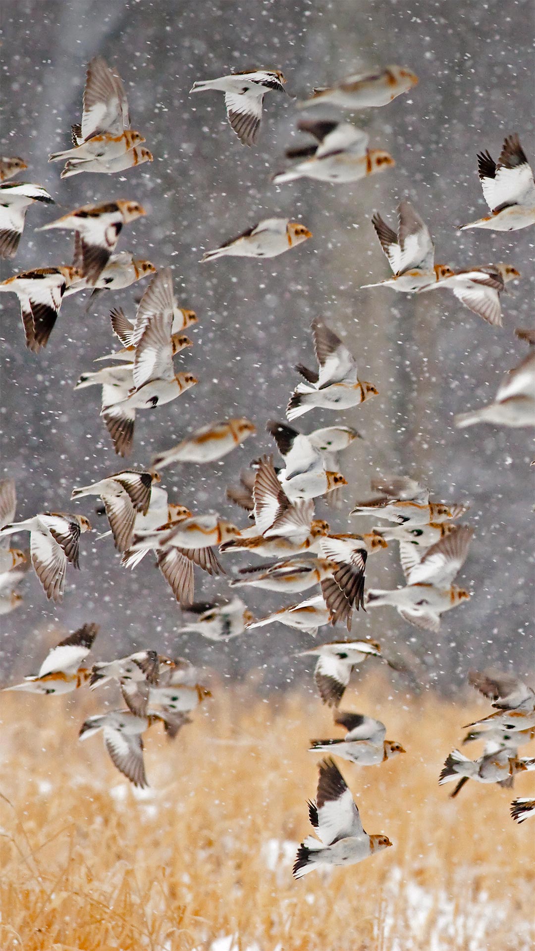 暴雪中成群的雪鹀,美国纽约 (© Marie Read/Minden Pictures)