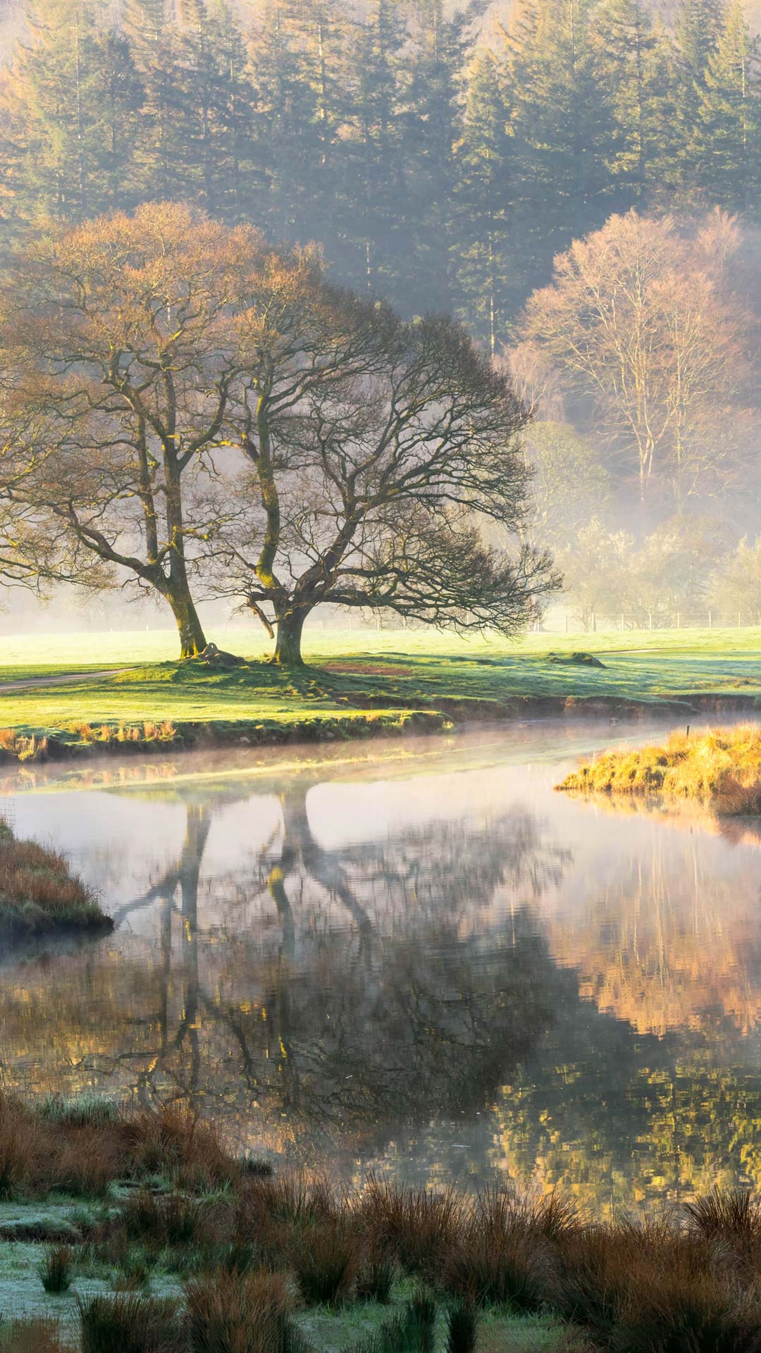 布拉塞河上的雾天黎明,英国湖区国家公园 (© fstopphotography/Getty Images)