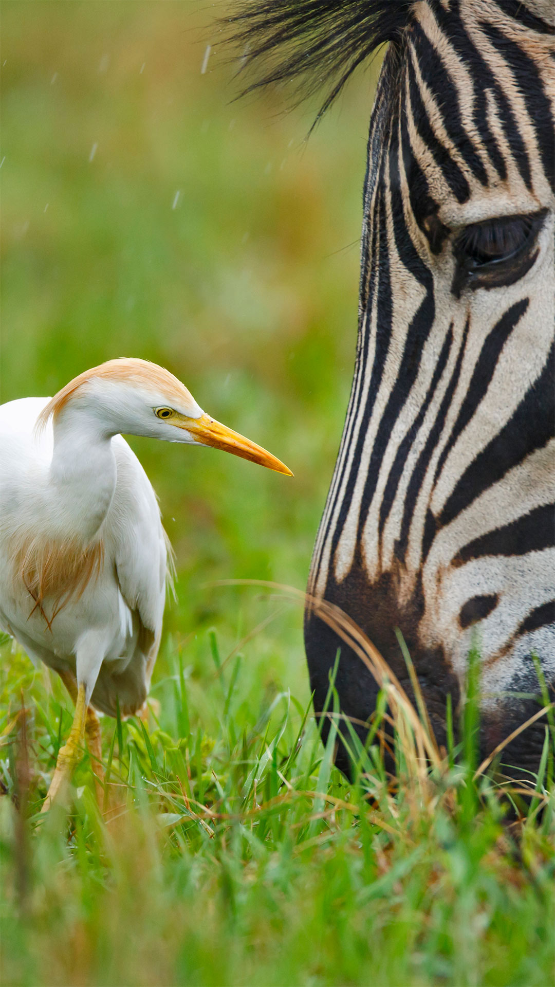 今天,我们向世界上的所有物种及其相互依存的关系致敬。图上的伯切尔氏斑马和牛白鹭,就向人们展示了一个很好的共生关系例子。共生的意思是:一个物种在不帮助或不伤害其他物种的情况下获益,正如这只伯切尔氏斑马在草丛中吃草时,惊扰起昆虫供牛白鹭捕食。