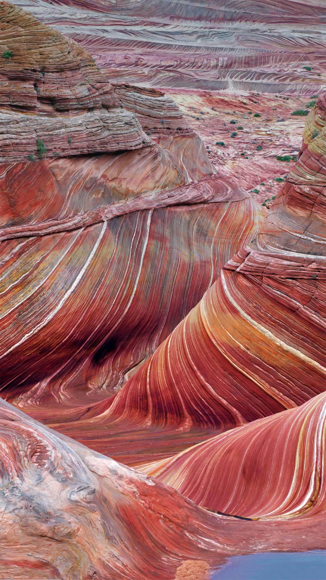 我们通过图片向你展示这梦幻场景,免去你的旅途劳顿。因为要如此近距离观察这些“波浪”——位于亚利桑那州北部荒野的螺旋状砂岩地层,你得在异常酷热的天气里,徒步走过崎岖且几乎无人踏足过的路线。你还需要办理许可证。为了保护景观,许可证数量有限,每天通过抽签发放。但也许对你来说,旅途本身和目的地一样重要?这样的话,广阔的朱红悬崖国家纪念园区的帕瑞亚峡谷中还有很多路线可供你选择,这里有着亚利桑那州和犹他州超过10万英亩的峡谷地。