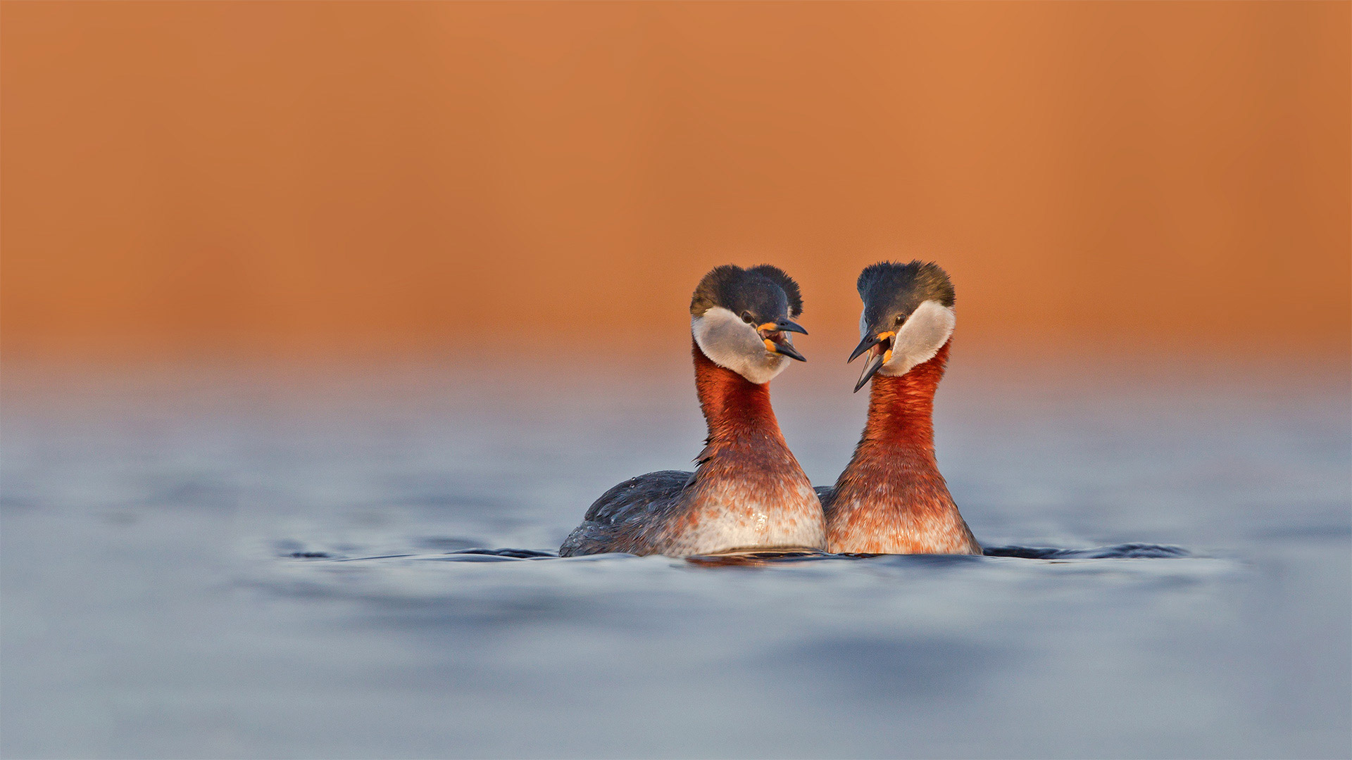 这个色彩鲜艳的阶段将会从5月持续到11月左右。在此期间,曾经平静的鸟儿会大声鸣叫,进行喧闹的求偶。也许这一切都是家族遗传:与潜水海鸟的亲缘关系相比,赤颈鸊鷉与艳丽火烈鸟的亲缘关系更为密切。