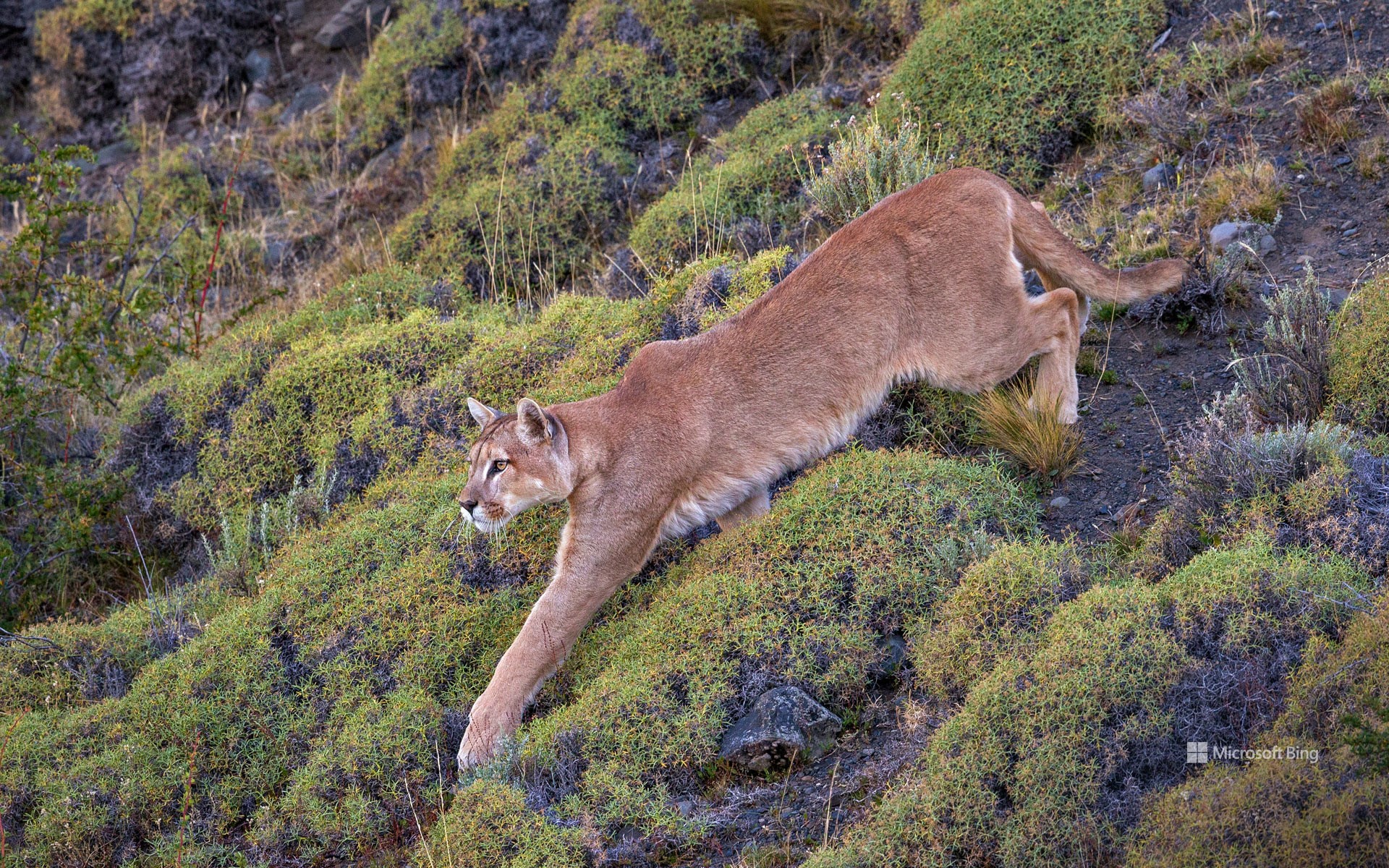 百内国家公园中的一头美洲狮,智利巴塔哥尼亚 (© Ingo Arndt/Minden Pictures)