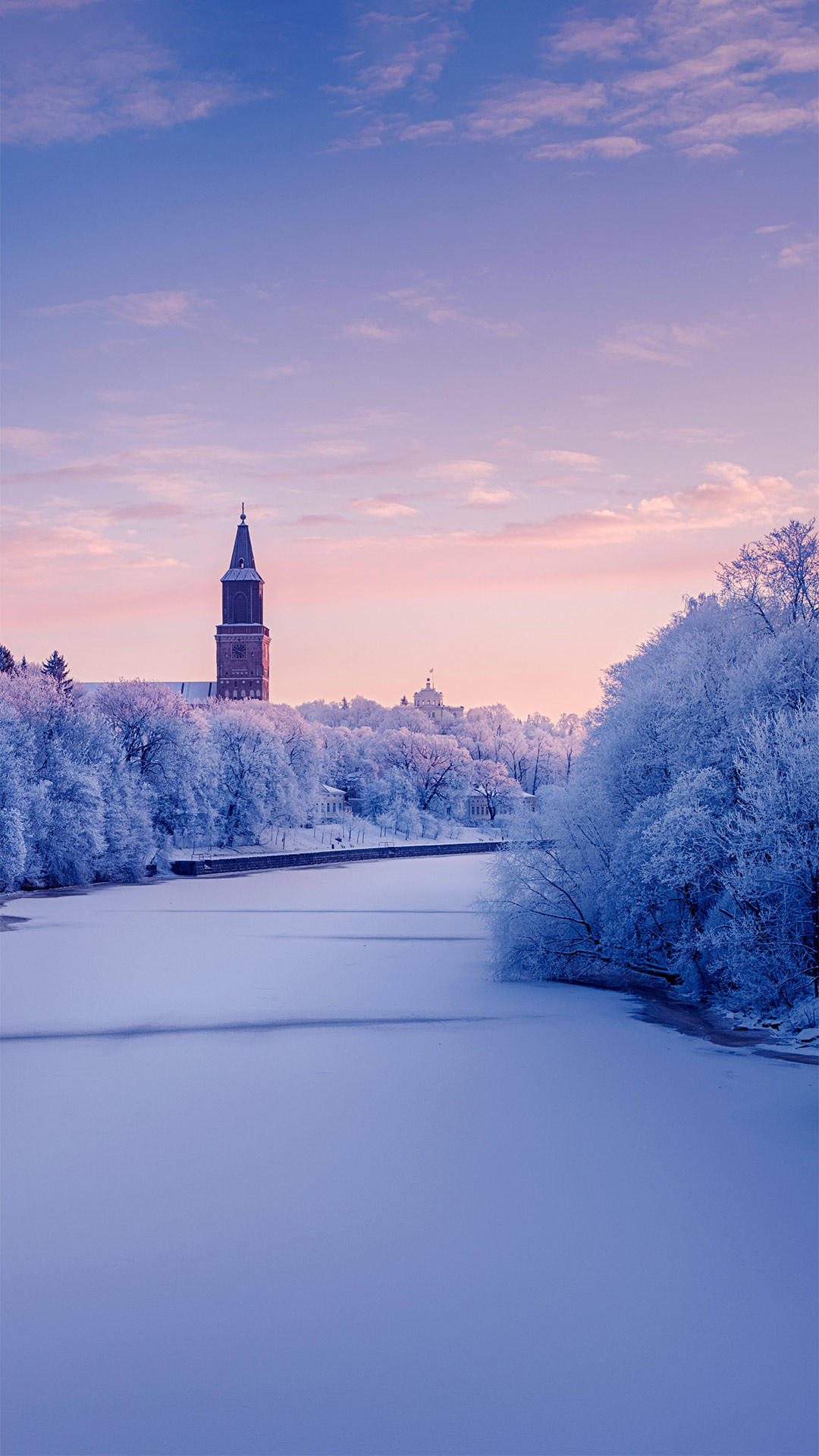 图尔库大教堂矗立在奥拉河口附近的霜冻森林之上。这座大教堂最初是在13世纪晚期用木头建造的,并在14世纪和15世纪使用石头作为主要建筑材料进行了扩建。事实证明这是明智的选择,因为1827年的图尔库大火灾吞噬了这座城市的大部分地区,也对大教堂造成严重损坏。数年后,这座教堂再次迎来了重建。