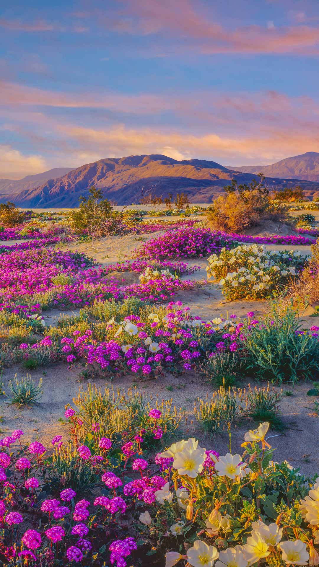 欢迎来到美国加州最大的沙漠州立公园——安沙波利哥。这个公园以烂漫春花和自然奇观而闻名。初夏是游览的最佳时节,漫山遍野都是各种野花、植物和仙人掌。这些野花为原本贫瘠的沙漠景观增添了色彩,吸引大批游客的到来。尽管你可能会想摘一些回家,但野花受到加州法律的保护,再说美景也不应私藏,而应大家共赏。