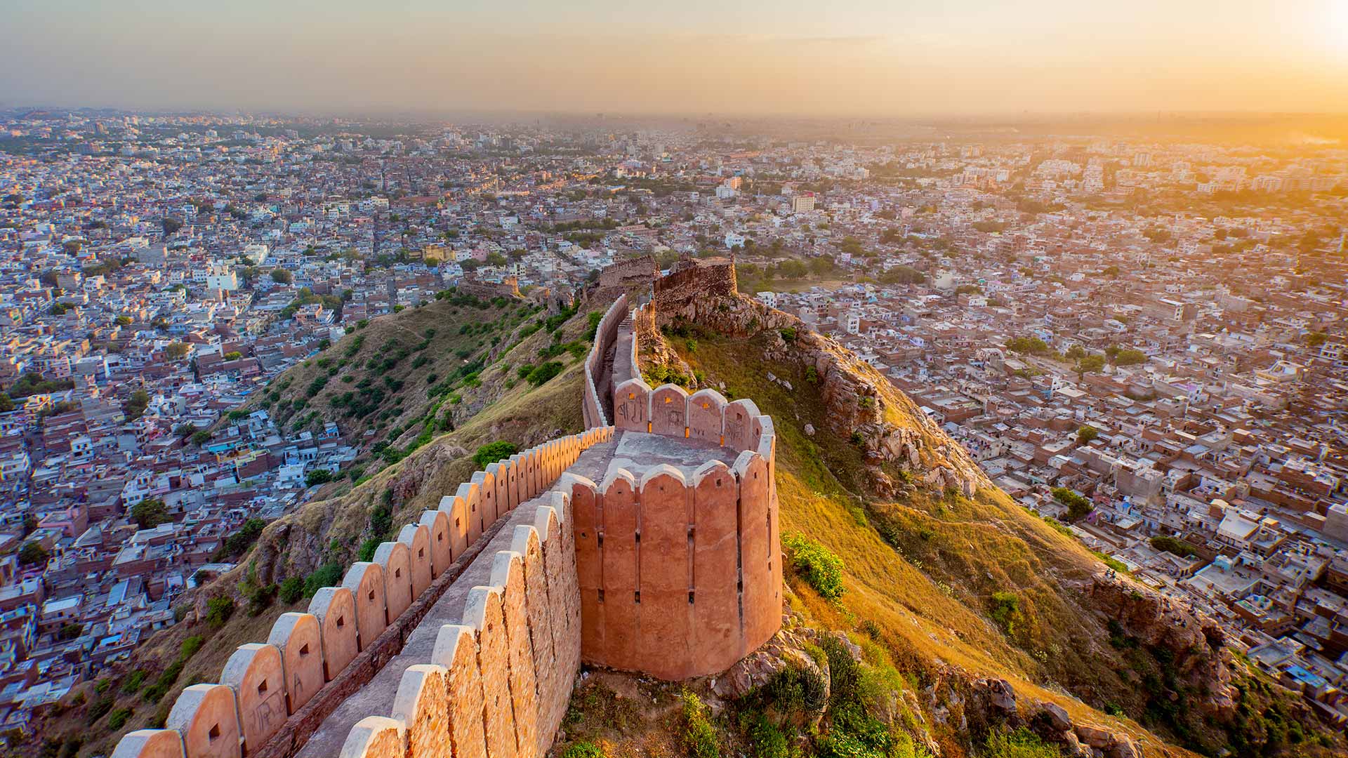 从纳哈加尔城堡鸟瞰斋浦尔,印度 (© Sean3810/iStock/Getty Images Plus)