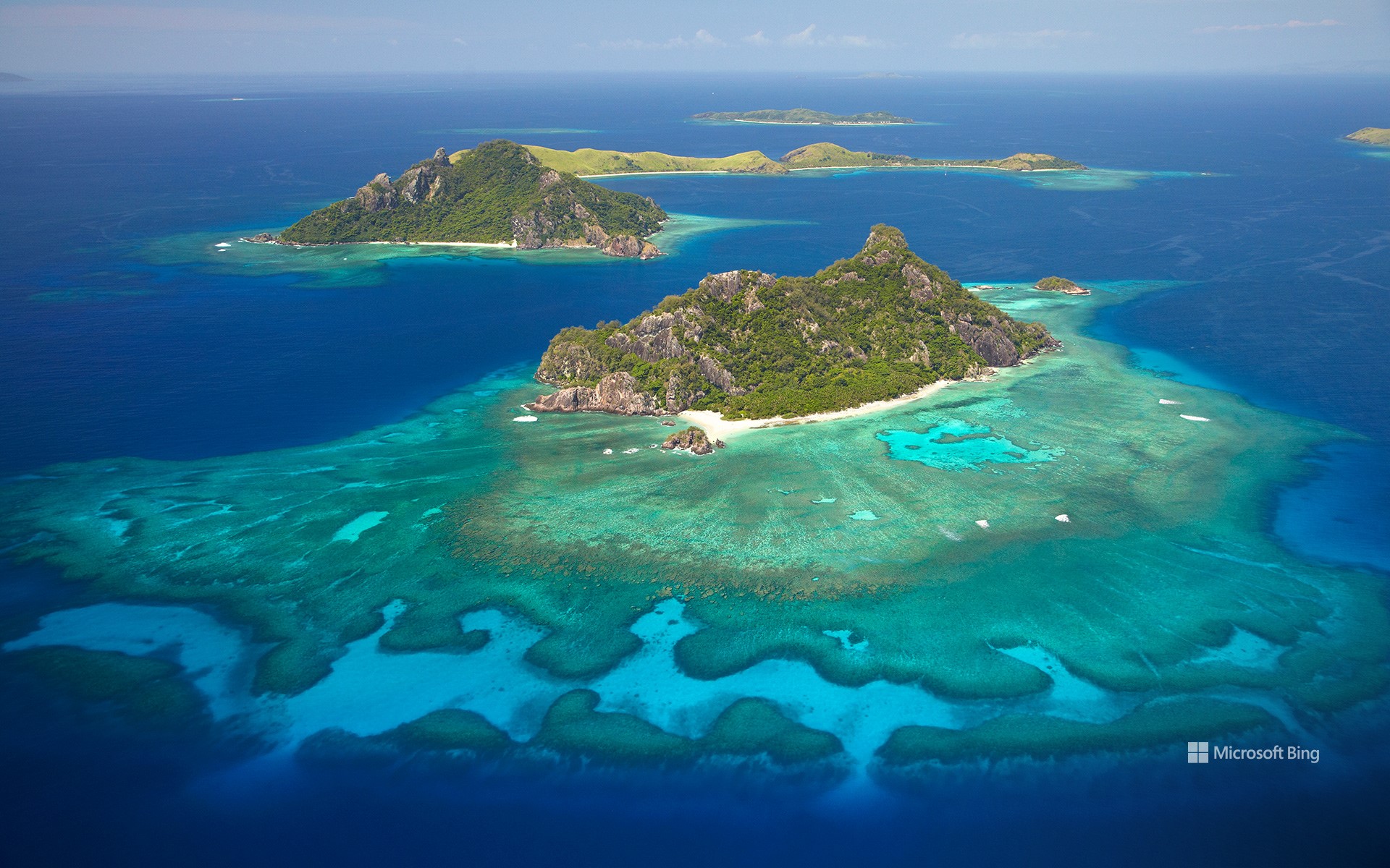 莫努里基岛周边的珊瑚礁,玛玛努卡群岛,斐济 (© David Wall/SuperStock)